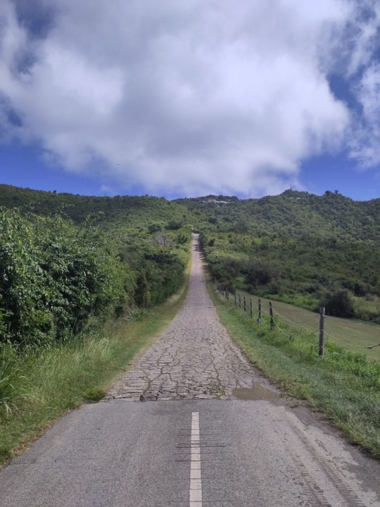 • La conduite caribéenne : un coup de klaxon veut dire merci ou bonjour, deux coups veulent dire attention j’arrive ; les chiens, vaches, poules font partie des usagers de la route ; pas le temps de construire des épingles à cheveux : les routes montent tout droit quand ça monte (voiture automatique, sois bénie).