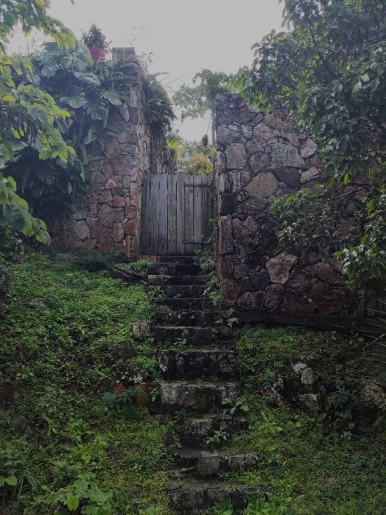 • La case créole : aucune vitre aux fenêtres, entièrement ouverte sur la nature, installée au premier étage à flanc de colline, sur un rez de chaussée inhabité. L’air passe dans toute la maison et permet d’aérer et de faire fuir les moustiques. Et une grande moustiquaire est installée au dessus du lit.